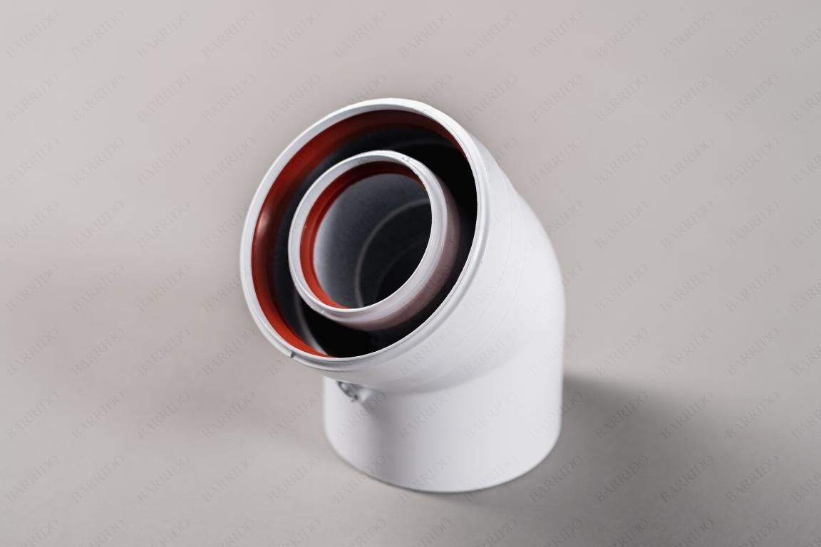 Отвод коаксиальный 45° Ø80/125 мм, Материал - Ø80 АЛ Ø125 АЛ (мама-папа)
