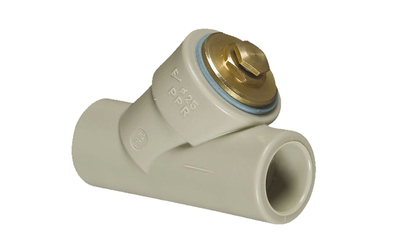 Комбинированный фитинг с ситечком из нержавеющей стали и латунной заглушкой задерживает крупные загрязнения в трубах для питьевой воды, циркуляционных